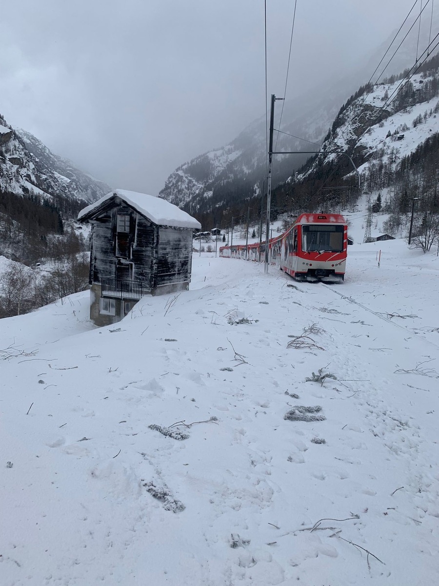 Vorsorglich hat die MGBahn in Absprache mit externen, lokalen Naturgefahrenspezialisten entschieden, den Betrieb auf der Strecke St. Niklaus–Täsch bis auf Weiteres einzustellen.